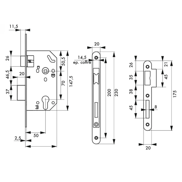| Conditionnement | 1 boîtier serrure avec gâche plate à encastrer |