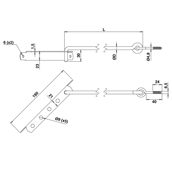 - Crémaillère avec 5 trous pour le crochet et 2 trous pour sa fixation.