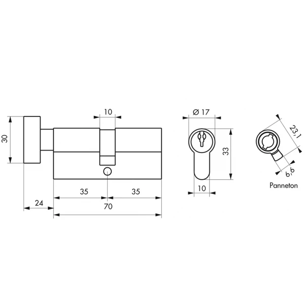 - Profil européen normalisé avec bouton : le côté intérieur se ferme sans clé.