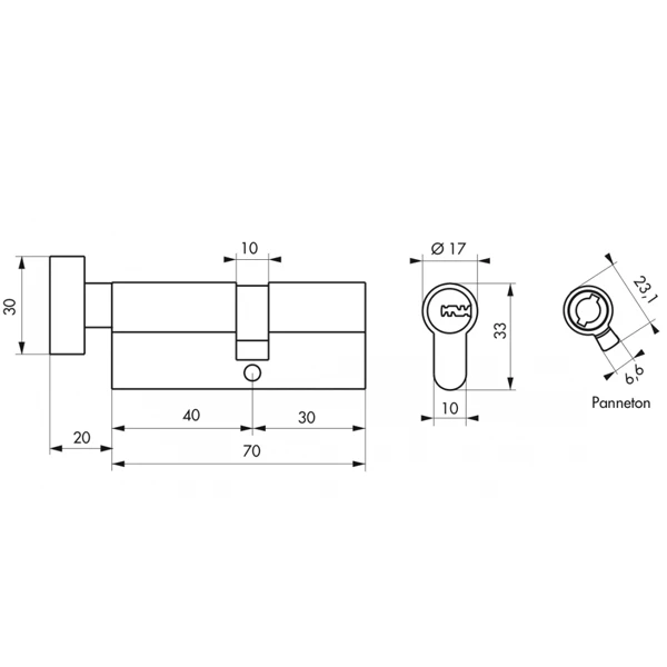 - Profil européen normalisé avec bouton : le côté intérieur se ferme sans clé.