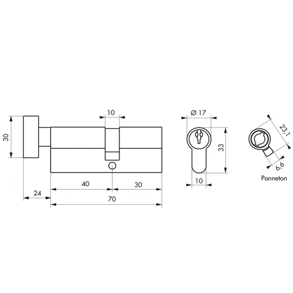 - Avec 3 clés crantées nickelées.