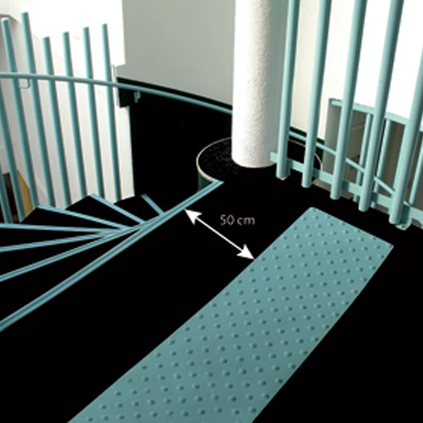 - Se pose à une distance de 50 cm de la première marche ou à proximité d’un danger.
