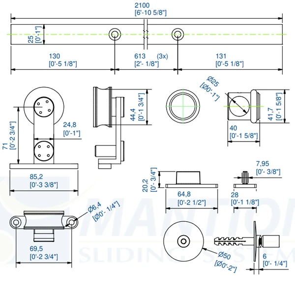 | Longueur du rail | 2100 mm |