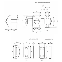 Verrou Targette Pour WC Et Salle De Bains Porte De 40 Mm Thirard 909035