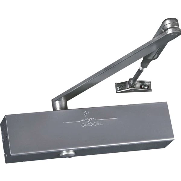 Homologué coupe-feu. Force de fermeture réglable de 3 à 6. Équipement de tous types de portes jusqu’à 120 kg et 1400 mm de largeur. Pose sur tous types de menuiserie (bois, alu, PVC). Temporisation et vitesse de fermeture, frein à l’ouverture réglables.
