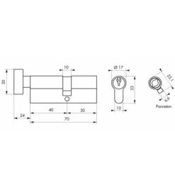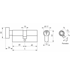 Cylindre De Sûreté à Bouton Thirard – Laiton Nickelé – 30 X 30 Mm