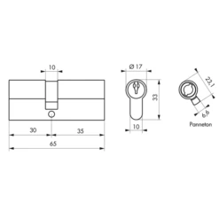 Cylindre De Sûreté Tesa TD60 – Nickelé – 3 Clés – 30 X 50 Mm