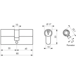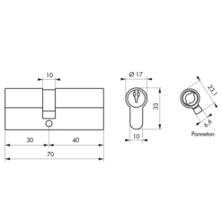 Cylindre De Sûreté à Bouton Thirard – Laiton Nickelé – 40 X 30 Mm