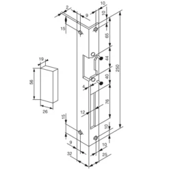 Têtière De Gâche électrique Vachette Réversible Simple Empennage En Alu