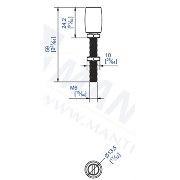 Support Enveloppant Mantion 2521L Tige Longue M8 – Rail 2525F