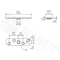 Platine Pour Fixation Sur Chant Avec Trou Taraudé M12 Mantion 0056