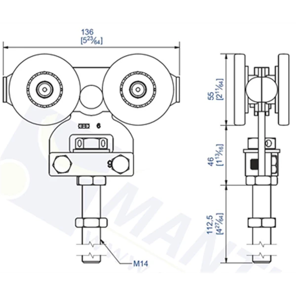 Monture à Galet 226A Pour Rail 62×55 Longue 120 Mm : Mantion 2265AL – Lot De 2