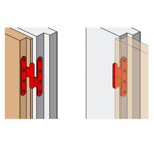 À noter : pour déterminer le sens de votre paumelle, l’ouvrir et observer de quel côté se trouve la partie portante (partie mâle). Si elle est à droite, il s’agit d’une paumelle droite.