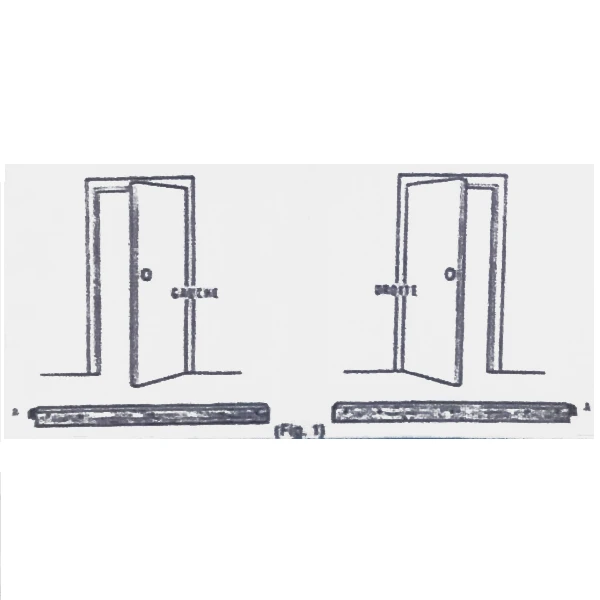 Présentez la plinthe devant la porte à l’intérieur et vérifiez si le poussoir (A) est bien du côté de la serrure (Figure 1).