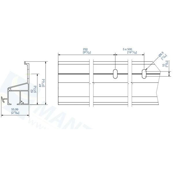 | Distance entre l’extrémité et le premier trou de fixation | 250 mm |