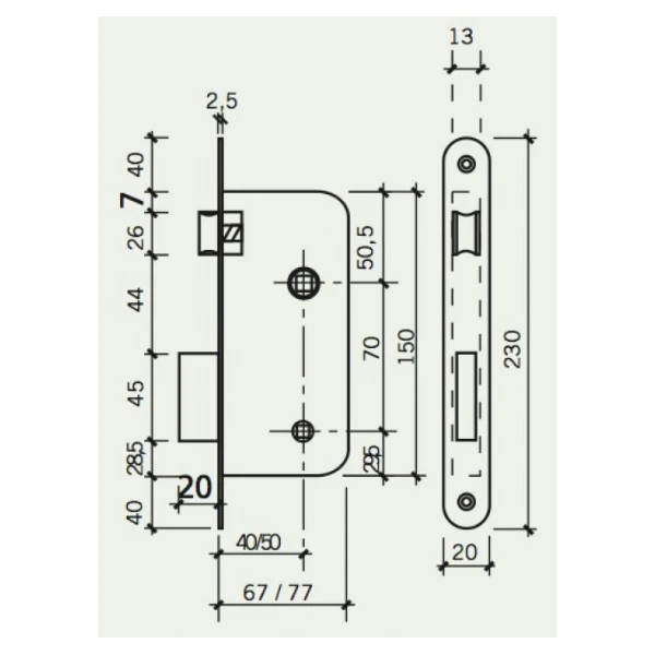 | Hauteur du pêne dormant | 38 mm |