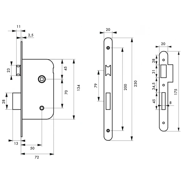 | Hauteur de la gâche | 175 mm |
