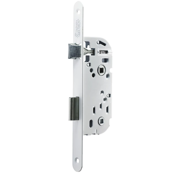 - Pêne demi-tour en acier zingué blanc.