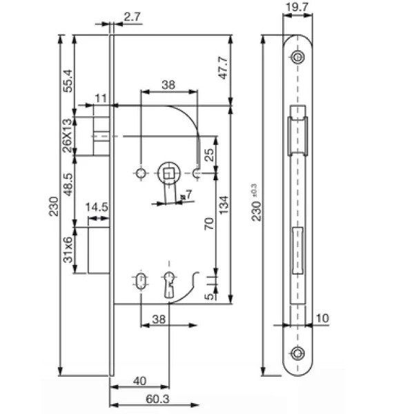 Le pêne est adapté à une porte main droite par défaut, mais peut être retourné sans démontage pour placer la serrure sur une porte gauche.