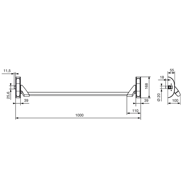 | Boîtier de fixation | 168 x 39 mm |