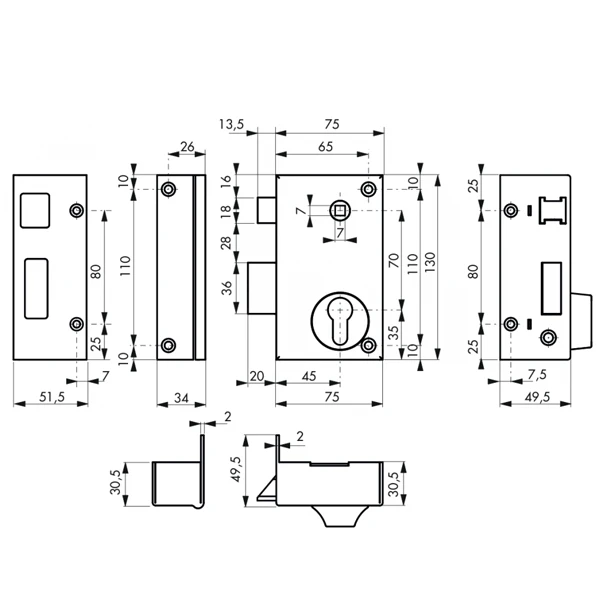 | Hauteur du pêne demi-tour | 18 mm |