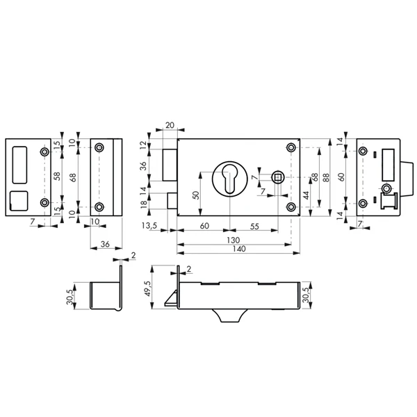 | Hauteur du pêne dormant | 36 mm |