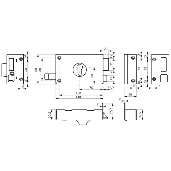| Hauteur du pêne dormant | 36 mm |