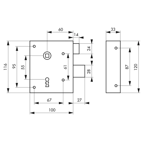 - Avec 2 clés nickelées pour la manipulation du mécanisme à 2 tours.