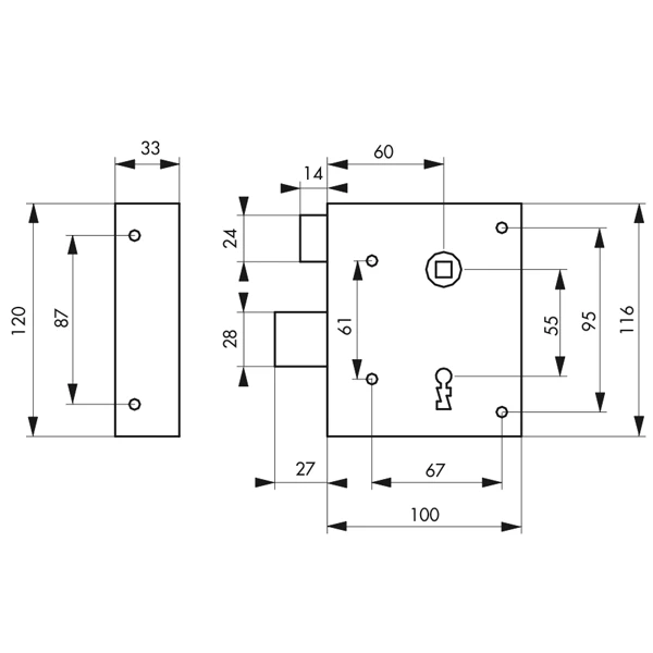 - Avec 2 clés nickelées pour la manipulation du mécanisme à 2 tours.