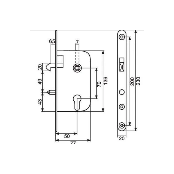 - Dimension trou de fixation bas – centre du pêne dormant : 74 mm