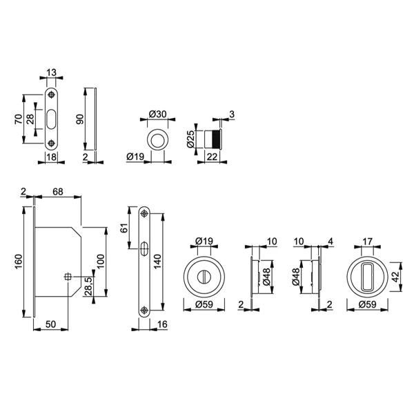Set pour porte coulissante intérieure à condamnation – aluminium chromé mat – Hoppe – axe 50 mm