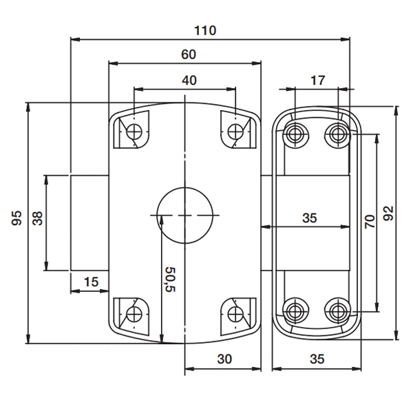 | Entraxe de fixation de la gâche | 17 x 70 mm |