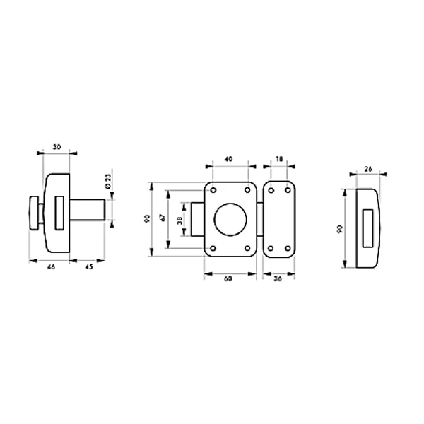 | Entraxe de fixation vertical de la gâche | 18 mm |