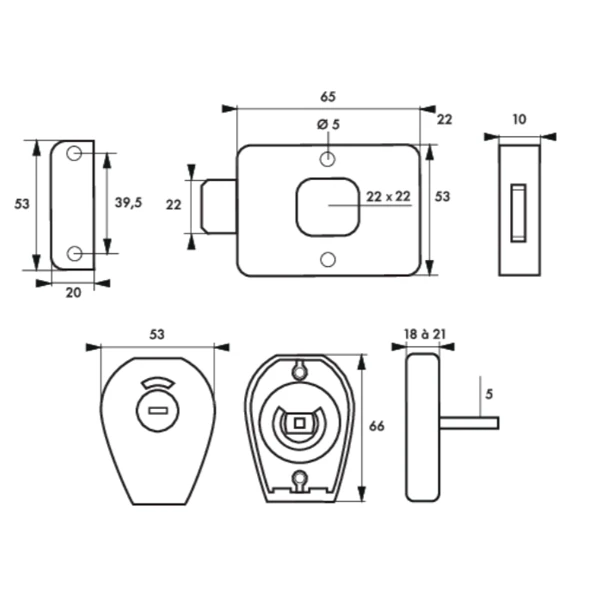 Boitier de serrure horizontal